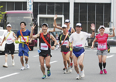 原水爆禁止世界大会の成功を願い、核兵器廃絶と米軍基地の撤去を訴えて県内8コースを走る「2013年神奈川反核平和マラソン」が7月13日と14日に実施された。同マラソン実行委員会が主催。神奈川県・県内市町村ほか後援。
