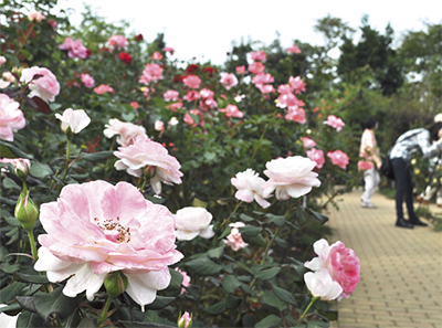 同園では11月9日まで、園内に咲く約930品種1550株のバラを楽しんでもらおうと、「ローズフェスティバル〜秋〜2014」を開催している。来場者にバラの歴史や見どころを紹介する「バラ園ガイドツアー」(1日4回/当日先着順/参加無料)や、バラの苗や切り花を販売する「ローズマーケット」10月24日〜27日/午前9時30分〜午後4時)などを予定。