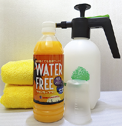 特長は▽水を使わないので水道代を節約できる▽排水を出さず、環境に優しい▽洗車場所がなくても時間と手間をかけずに、いつでも車をきれいにできること。南米ヤシ科植物からとれるカルナバ樹脂が主原料。使用法は簡単で、スプレーして汚れやホコリを浮かせ、マイクロファイバーの布で拭くだけ。別の布でもうひと拭きすると光沢がでる。