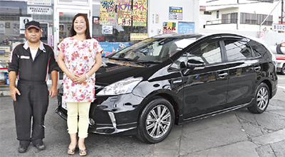 500ミリリットル入り1本、専用スプレー、クロスのセットで税込7千円。水で15倍に希釈して普通車なら約25台分使用できるという。カー用品店にある同類の商品やコイン洗車と比較しても1回280円と経済的だ。「車磨きがとても楽になり、仕上がりも大満足」と顧客の重田さんの笑顔も輝く。