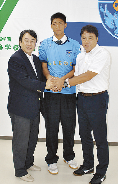 星槎国際高校湘南(大磯町)3年の市川暉記(あきのり)さん(17・中井町)が、ゴールキーパーとしてサッカーJ2の横浜FCとプロ契約を結んだ。10日に同校で入団会見が行われ、「1年目からレギュラーとしてチームの勝利に貢献したい」と抱負を語った。