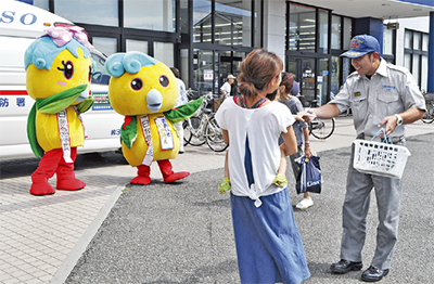 大磯町消防本部は、大磯駅とスーパーたまや前でキャンペーンを実施した。町の観光キャラクター「いそべぇ」と「あおみ」が一日救急隊長として参加。朝の通勤・通学客と買い物客へ救命講習の受講や救急車の適切な利用を呼び掛けた。