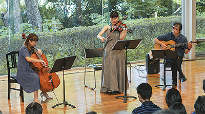 江藤さんは昨年リリースしたファーストソロアルバム『hue』の楽曲や、影響を受けたというブラジル音楽を中心に16曲を披露。アルバムプロデュースを行ったギタリストの笹子重治さん、チェロ奏者の橋本歩さんとのトリオ演奏が相模湾を一望するホールを包み込んだ。