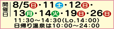 箱根湯本の天成園では7日間限定で、日帰り温泉付きのランチバイキングを開催。和・洋・中のシェフが腕をふるった料理の数々と、パテシエ自慢のスウィーツ合わせて約40品目が楽しめる。シェフが目の前で揚げてくれるサックサクの天ぷらは、まさに絶品。夜になると、玉簾の瀧と飛烟の瀧でライトアップショーも。温泉でゆったりと、夏の疲れを癒してみては。