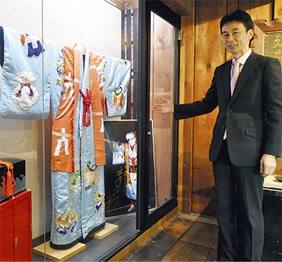 市内本町の外郎(ういろう)博物館では、2月3日に死去した歌舞伎俳優の12代目市川團十郎さんを偲び、舞台衣裳を展示している。衣裳は実際に團十郎さんが公演で着用していたもので、松竹衣裳株式会社の好意で提供された。3月末まで展示予定。