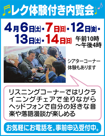 4月6日〜新設したシアターおよびリスニングコーナー体験付き内覧会も開催。ぜひご参加を。