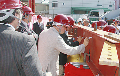 (仮称)新小田原衛生総合医療会館の新築工事に伴う上棟式が9月20日、小田原市立病院前(市内久野)の建築用地で催された。(一社)小田原医師会の横田俊一郎会長をはじめ、加藤憲一市長や関係者が参加。四方(しほう)祓之儀(はらいのぎ)や上棟之儀など、工事の安全を願い神事が執り行われた。横田会長は「夢であったものが形となって現れるとますます期待が大きくなります。無事完成しますようお願いします」とあいさつした。