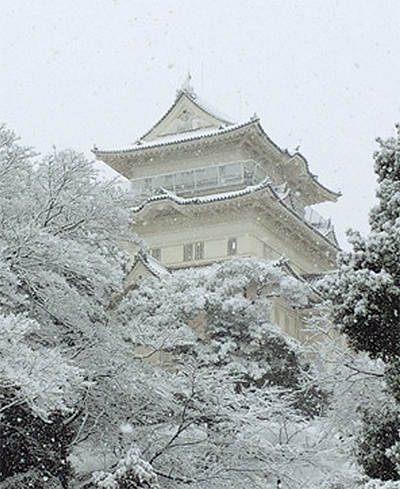 小田原城も雪化粧