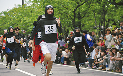 小田原城馬出門から学橋までの約150mのコースで健脚を競った忍者決定戦。「歴史好きで忍者にも愛着があった。優勝できてうれしい」と笑顔で振り返った。