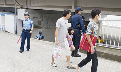 今回で4回目となった津波対策訓練。例年は海水浴場の近隣住民らを対象とした訓練を実施してきたが、今年は初めて、海水浴客を対象に行った。