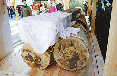 また、多くの人に神社や木の文化に親しんでもらう機会にしようと、同神社は「みんなの鳥居プロジェクト」を企画。2月下旬まで境内に古材を展示するほか、鉋がけなどの作業に参加する市民も募っている。