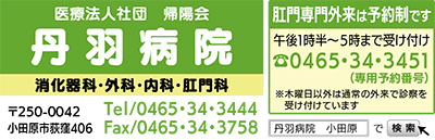 1969年の創立以来、地域に寄り添う医療を推進してきた丹羽病院(小田原市荻窪406)では、診療科目の中に肛門専門外来をもうけている。これまで3000を超える痔の手術を行ってきた伊東功医師と、外科医の山本壮一郎医師に、痔について聞いた。