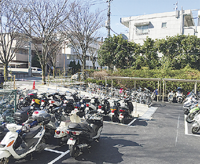 市庁舎工事の際、資材置き場だったけやき東側のスペースにも2月下旬から駐車可能。駐輪場はけやき通り側を使用できる。