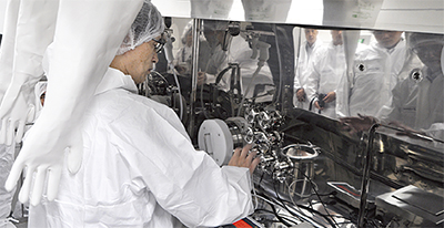 対象物質に対し、作業安全性と環境に配慮した「封じ込め仕様」として、国内最大級の流動層造粒乾燥機や、洗浄や乾燥を自動化した高速打錠機など最新鋭の設備を導入。