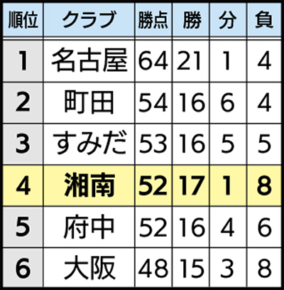 4位につける湘南は本日12月2日(土)、勝ち点で並ぶ5位府中とグリーン神戸で対戦する。プレーオフ出場権が与えられるのは5位以内。リーグ戦も終盤に入り、一つも落とせない重要な試合が続く。