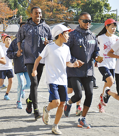 エリトリア国とブータン王国の陸上選手が11月29日、足柄小学校を訪問した。両国は、東京2020オリンピック・パラリンピック競技大会に向けた事前キャンプを小田原市で行う。