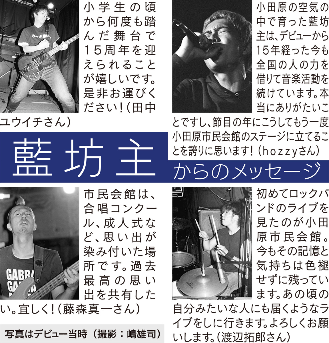 小田原出身のロックバンド「藍坊主(あおぼうず)」がCDデビュー15周年を迎え、2月11日に小田原市民会館で凱旋ライブを行う。