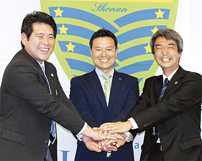 古川社長はメガソーラー発電所建設以後、地元の小・中学生を対象に施設見学会を開くなど、地域貢献事業を行ってきた。稼働から1年経過したのを受け、さらに地域貢献事業を力強く推進するため、湘南BFを支援することにしたという。今回の支援について古川社長は「強くなってもらうのが一番の地域貢献。(寄付金は)チームの強化費としても有効活用してほしい」と発破をかけた。