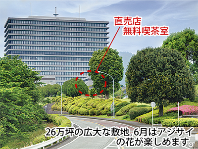 大井直売店には会社の理念である、おもてなしの心が随所に溢れる。その一つが「実際に試飲を楽しんでほしい」と店隣に併設されている無料喫茶室だ。