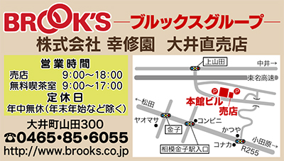 挽きたてのおいしさ、ドリップバッグコーヒーや茶類の通販でおなじみ「ブルックス」の大井直売店が今春、大井町山田の第一生命大井事業所跡地にオープンした。中井町にある同社工場直売店と同じ価格で購入できるとあり、連日賑わいをみせている。