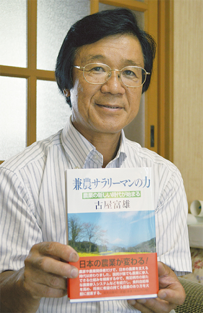 古屋さんは著書の中で「わが国の農業を持続可能な産業にするために、農家や農業関係者だけで担う次代は終わった」と言明。国民が誰でも農業に参入できる南足柄市の新たな農業参入システム等を紹介し、食料自給率を高め将来に希望の持てる農業のあり方を提案。「兼農サラリーマンが我が国の農業を『イ農ベーション』する時代は始まった」と記している。巻頭には元農水省大臣官房総括審議官の伊藤健一さん、作家の三戸岡道夫さんが、発刊への言葉を寄せている。