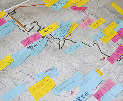 地図作りを発案した同大3年の今井未来さん(21)は「私の地元(群馬県沼田市)の山と似ている。大好きな地域なのに大野山と牧場しか注目されず残念。共和の魅力をもっと多くの人に知ってほしい」と、お年寄りの昔話に耳を傾けた。