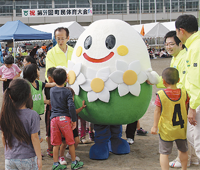 大井町で18日に開催された町民体育大会の会場に大井町イメージキャラクター『すいっぴー』が現れた。愛くるしい表情とたまご型のボディーで早くも子どもたちのハートをつかんた。