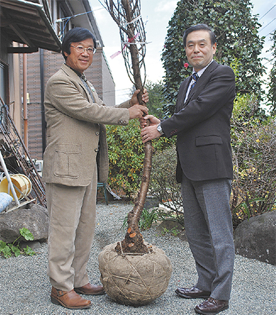南足柄原産の桜「春めき」を生産する農家、古屋富雄さんから12月22日、社会福祉法人日本点字図書館(東京都新宿区高田馬場)に春めきが贈られた。