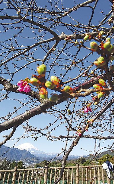 2月11日(土・祝)から桜まつりが始まる松田山西平畑公園で、河津桜が本格的に開花し始めた。松田山ハーブガーデンに12年勤務する田代博美さんによると「去年より半月、一昨年よりもひと月早い」という。