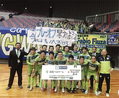 フットサル・Fリーグの湘南ベルマーレが、12月16日(土)に南足柄市体育センター(同市和田河原1030)で公式戦を行う。今月8日に大阪で行われた第29節で今季20勝目を飾った湘南は、リーグ戦4試合を残して5位以内が確定。2007年のクラブ創立以来初のプレーオフ進出を決めた。ホーム凱旋となる16日(土)の対戦相手はデウソン神戸で午後4時キックオフ。