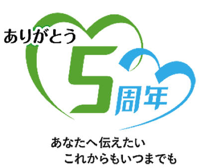 職員の公募で決定したキャッチコピーは『ありがとう5周年 あなたへ伝えたい これからも いつまでも』。”これまでの5年間だけでなく、これからも感謝を込めた事業活動の推進に対する約束”を意味し、ロゴマークは『感謝』『絆』『信頼』をハート型で表現している。
