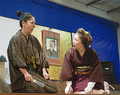 湯河原を拠点に活動する劇団・銀河海鏡が17日に文化福祉会館で19回目の公演となる「まっかっかの長者」を披露した。作品はけちな性格の長者や、長者そっくりの兄弟が繰り広げる人情コメディ。オール関西弁で、劇団は6月から練習を重ねていたという。民家を舞台に劇団代表の高橋文枝さん(長者と長者の弟の2役)や、妻役の金井文江さん(演出も兼務)など地元の役者陣が迫真の演技を繰り広げ、120人が詰めかけた客席に笑いを巻き起こした。