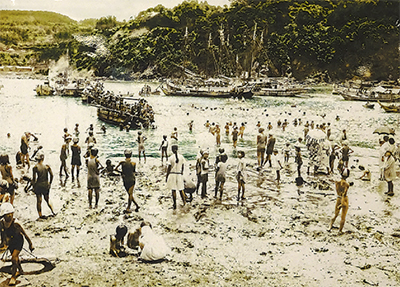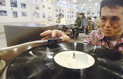 真鶴地域情報センターで今月8日まで町の過去・現在・未来に思いを馳せる「マナヅルタイムトラベル」が開催された。3日には出張レコードカフェも開催。今回の企画は同センターに事務局を置く真鶴未来塾が「お年寄りから子供まで楽しめるイベントを」と企画したもの。同塾に参加する島村康行さん(平塚市)=写真が自家焙煎コーヒーや40年ほど前のスピーカーなどを持ち込み、マイルス・デイヴィスやイーグルスなどの名盤で会場を演出。壁には昔の真鶴を思い起こさせる写真がずらりと並び、来場者が思い出話に花を咲かせながら展示をたどった。写真は回覧板などで提供を呼びかけたところ約500枚が集まり、中にはアルバムごと持参した人もいたという。まなづる小学校近くにあった駄菓子屋・森田商店の森田美津江さんは店の写真など数点を提供。「昔は子どもが多くてヨーヨーが売れた」と振り返っていた。