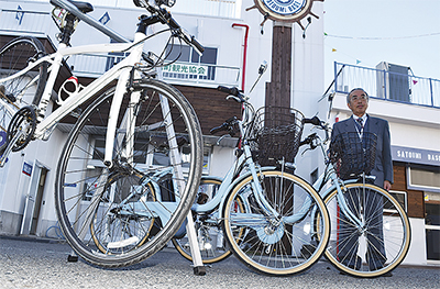 レンタサイクルは湯河原や箱根にもあり、宿泊施設や観光協会などが運用しているが真鶴では町内初。納品されると早速2人の外国人観光客が借り、1時間ほどの周遊を楽しんだ。