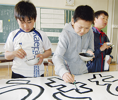 また、市内全13小学校に協力を呼びかけ、被災地の子どもたちへのメッセージを書いた横断幕(縦1m・横3m)13枚を製作。今月20日に参加した本町小学校本部委員会の高久梨乃さん(6年)は、「文字の中に、みんなの想いを書くことにした。メッセージが伝えられれば嬉しい」と話した。