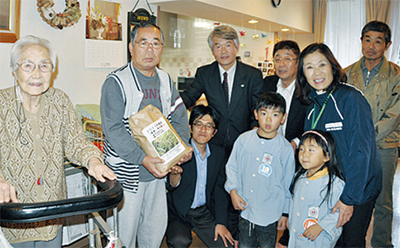 同村は今年4月に生態系の保全における取り組みの一環として、(株)日立製作所や地権者、地元有志で開村した。休耕田や竹林、山林など約7000平方メートルの区域を利用して環境作りや調査などを行っている。今回はその一環としてしぶさわ幼稚園児らと5月から育ててきたもち米を地域の人に味わってもらおうと、同幼稚園とやまばと学園、寿湘ヶ丘老人ホームを訪れ、10kgずつ手渡した。
