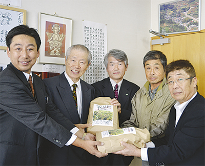 日立ITエコ実験村(千村・谷光清村長)で収獲されたもち米を今月22日、同村で活動する千村ネイチャー倶楽部と生き物の里(千村)管理運営協議会が同地区内の3施設に寄付した。