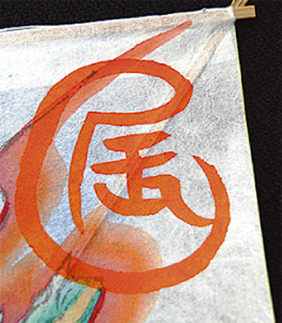 干支凧の絵柄は、独自に研究した「干支学」に基づいて決めており、同じ辰年でも12年前のものとは色使いや目の向きなどが異なっている。詳細は「企業秘密」と笑顔を見せるが、来年は運気をつかみに行く年とのことで、来年用の辰の手にはおなじみの宝玉が描かれていない。名入れの書体にも、縁起が良いという独特の江戸吉兆文字を用いるこだわりぶり。
