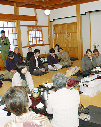 南足柄市の長福寺で1月21日、足柄茶の生産者や販売に携わる人ら約40人が集まり茶飲み交流会が開催され、秦野市からは柏木茶園の柏木元樹さんが代表として参加した。
