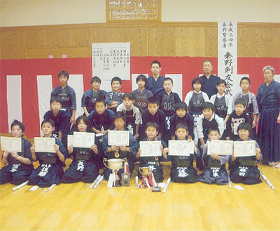 剣士たちは勝ち抜き戦で腕を競い合い、低学年の部で谷連志さん(南小4年)、高学年の部で塩野廉さん(南小6年)が優勝した。
