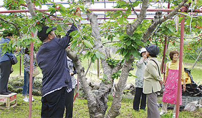 この日は事前に応募した38人が参加。一行は、山梨県の南アルプス市周辺を巡り、サクランボ狩りやマンズワインの工場見学などを楽しんだ。参加者の1人は「介護者同士で話すことができて、1人ひとりは大変な状況ながらも、皆さん前向きに頑張っていることを知り、元気が出た」などと話した。