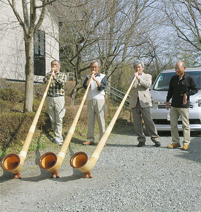 その後、参加者は屋外で音出しを行い、山の麓にある同センター周辺一帯に手作りのアルプホルンの音色が響き渡った。