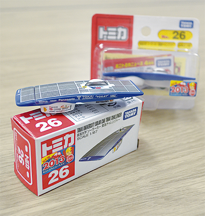 株式会社タカラトミーが製造、販売するミニカー「トミカシリーズ」に東海大学学生によるライトパワープロジェクトチームが製作したソーラーカー「東海チャレンジャー」が加わり、4月20日(土)から各種玩具店の店頭などで販売が開始される予定だ。
