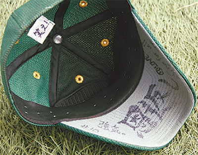 立ち止まった中で気付いた野球の存在の大きさ。「硬式野球をもう一度やりたい」という気持ちが芽生え始めた時、アサヒトラストの練習に参加。質の高い練習を見て「一気に引き戻された」とその日に入団を決意。自らの意志で第二の野球人生を歩み始めた。アサヒトラストのキャップ裏には「恩返し」「強気」「笑え」という言葉が並ぶ。