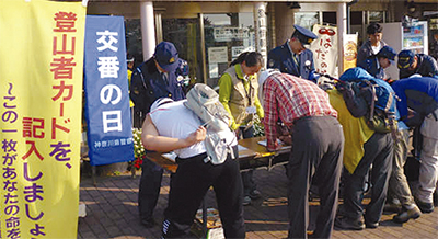 本格的な登山シーズンが始まったゴールデンウィーク初日の4月26日には、遭難防止の啓発キャンペーンが開催された。市内の警察や消防、山小屋組合などで構成される市丹沢遭難対策協議会の会員らが早朝から、大倉登山口付近のどんぐりハウス(堀山下1487)前で、登山者カードの記入などを呼び掛けた。