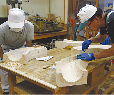 参加者は「曲線を彫るのが難しく、こんなに大変だとは思わなかった。でも、毎週みんなで楽しみながらやっています」、「コンマ何ミリの細かい作業だが、正確にやった方がよりいいものが出来上がると信じやっている」などと話した。