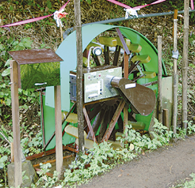 秦野市南地区のボランティア団体「秦野一八会(岡田晃会長・14人)」がこのほど、設立10周年を記念して手作りのナノ水力発電機を製作、9月6日に設置場所の千村生き物の里(日立ITエコ実験村・谷光清村長)で稼動式を行った。