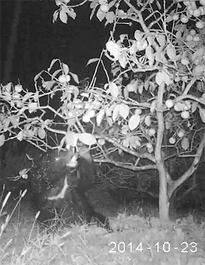 堀西地区の農園と桂林寺近くの柿畑で10月23日、足跡やフンなど、ツキノワグマの痕跡が発見された。秦野市環境保全課は周辺住民に情報提供と注意を呼び掛けている。