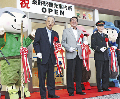 小田急線秦野駅の構内に、新たに秦野市の観光案内所が完成した。9月22日にはオープニングセレモニーが行われ、古谷義幸市長や市観光協会の松下雅雄会長、松本司秦野駅長が出席した。