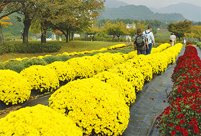 神奈川県立秦野戸川公園(堀山下1513)のざる菊の開花が始まり、来園者の目を楽しませている(=写真=10月20日撮影)。